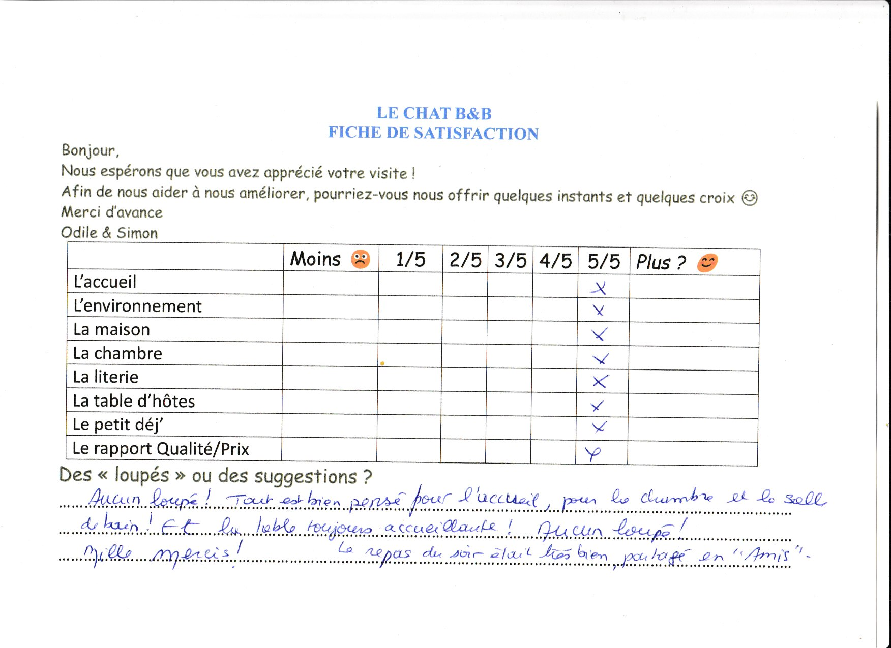 "Un grand merci pour votre accueil très chaleureux. L'impression de partager un moment avec des amis"